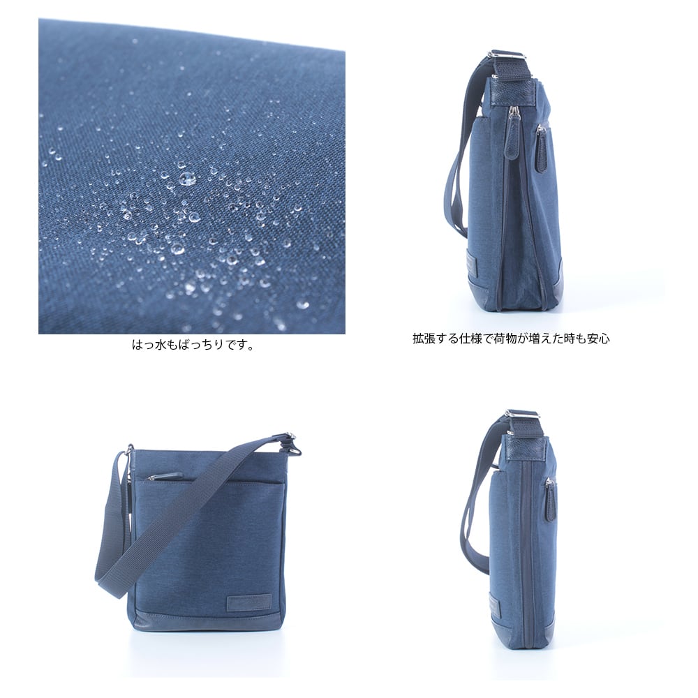 メイン素材は表情のある杢調ポリエステル素材にはっ水加工を施しています。